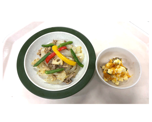 豚しゃぶおろし塩だれ、枝豆コロッケ